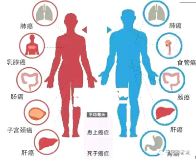 在我國,癌細(xì)胞頻繁“光顧”的人體組織,位居男性發(fā)病率前十位的分別是,肺、胃、肝、食管、大腸癌、膀胱、胰腺、腦、淋巴、腎;女性為肺、乳腺、大腸、胃、肝、食管、卵巢、宮頸、胰腺、腦。“可以說,這十種腫瘤占據(jù)了所有腫瘤類型的80%以上。