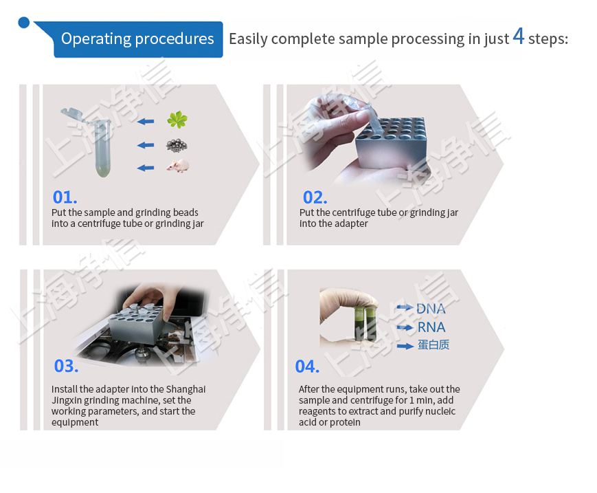 Shanghai Jingxin? JXFSTPRP-96L? series tissue grinder (patented product, counterfeit must be investigated! ZL2019301918692) is a special, fast, high-efficiency, multi-test tube consistent system. It can extract and purify the original DNA, RNA and protein from any source (including soil, plant and animal tissues/organs, bacteria, yeast, fungi, spores, paleontological specimens, etc.)