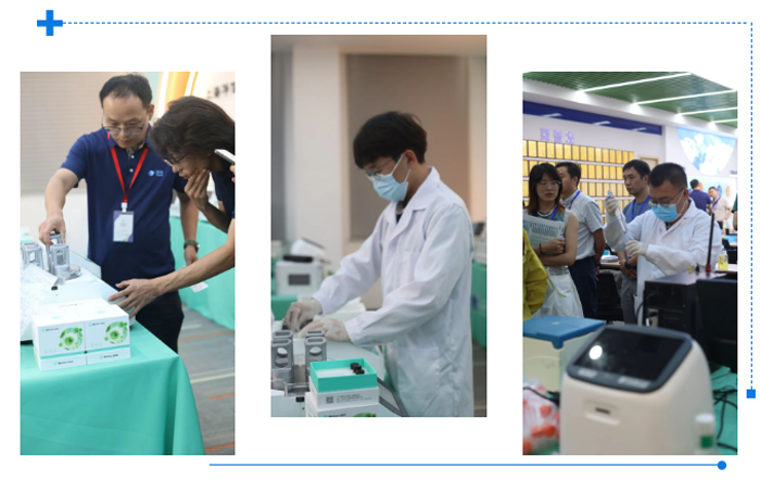 代理商們分組參觀,在技術人員的操作下,體驗了“樣本剪碎→酶體系配置→恒溫酶解→細胞過濾→活性檢測”的全流程操作。實操過程中,技術團隊針對不同區域客戶的需求特點,提供定制化建議:比如來不及立即制備的樣本,推薦“高效組織保存液”保存后,再進行實驗;針對“批量樣本處理”需求,搭配批量解離單細胞懸液制備儀進行。貼心準備了小規格試用裝,簡潔的操作說明書,免費試用無憂。